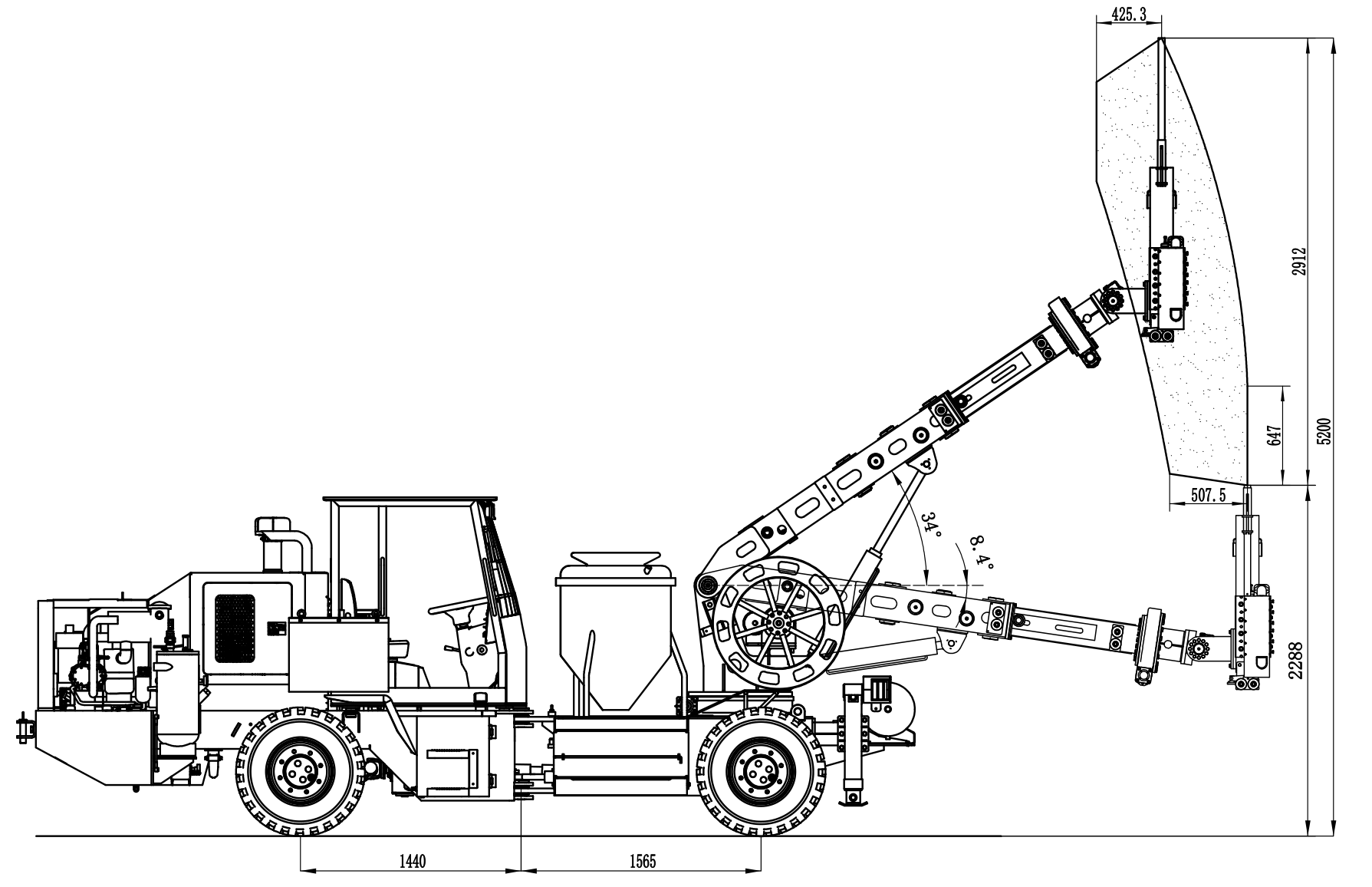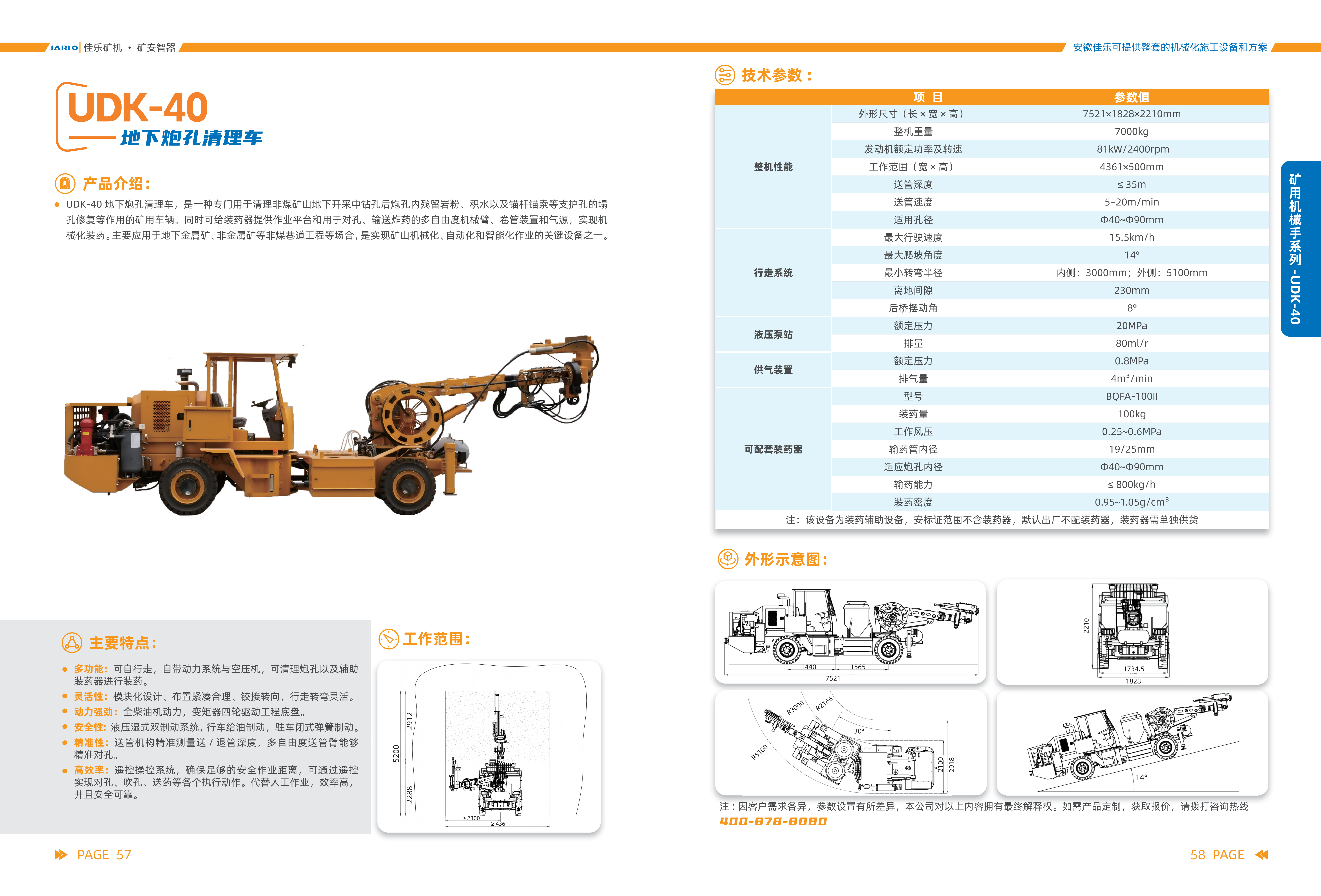 2.灵活性:模块化设计、布置紧凑合理、铰接转向,行走转弯灵活。