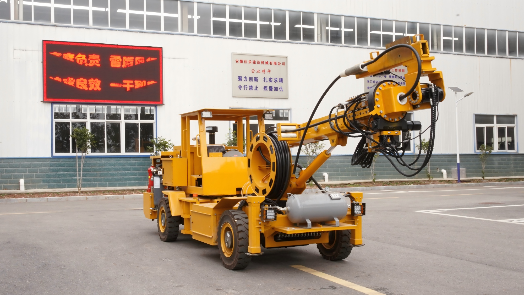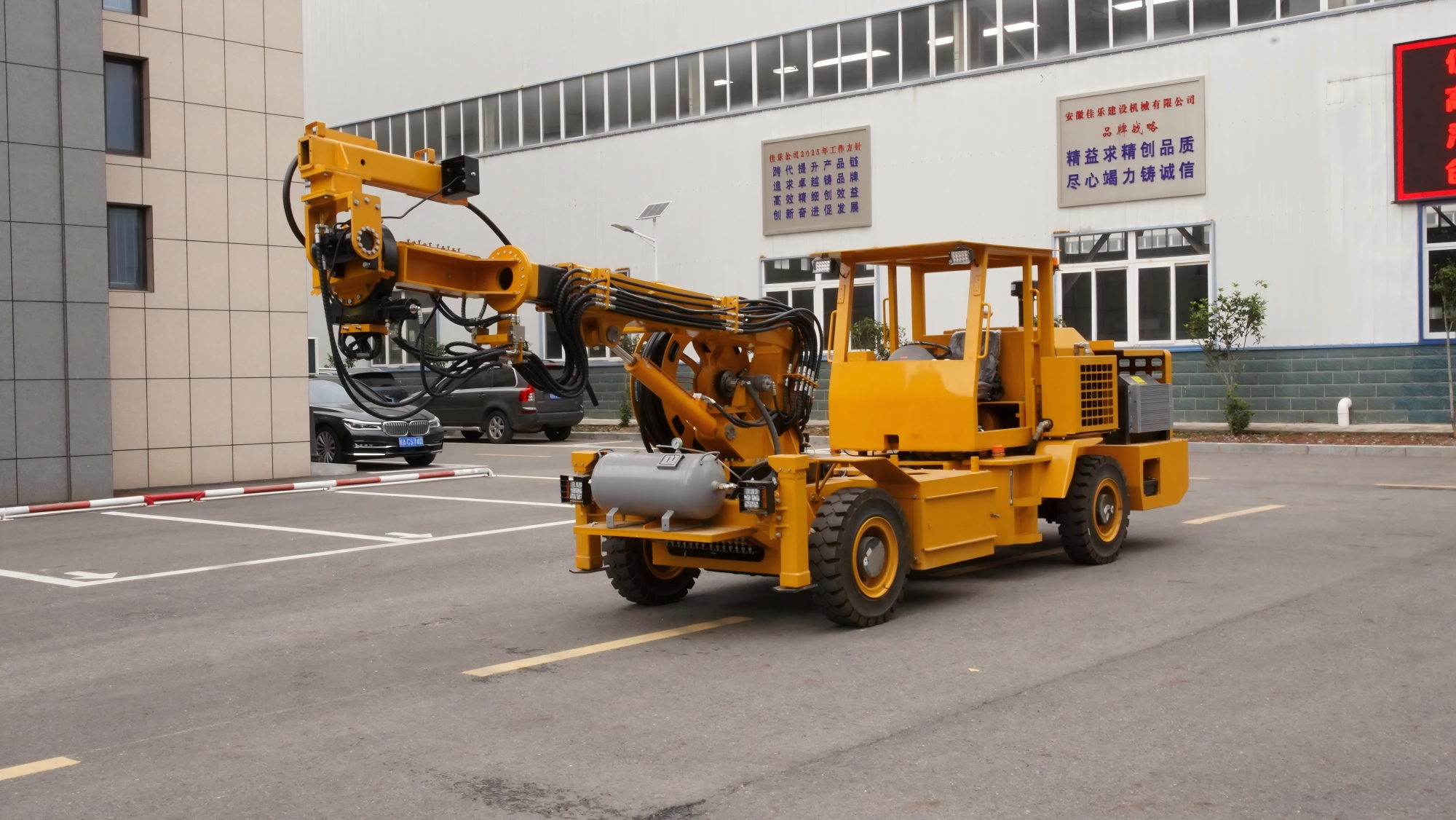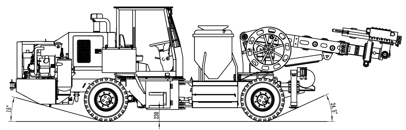 1.多功能:可自行走,自带动力系统与空压机,可清理炮孔以及辅助装药器进行装药。