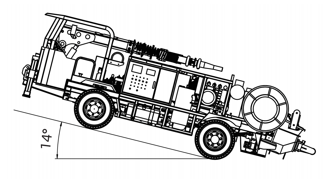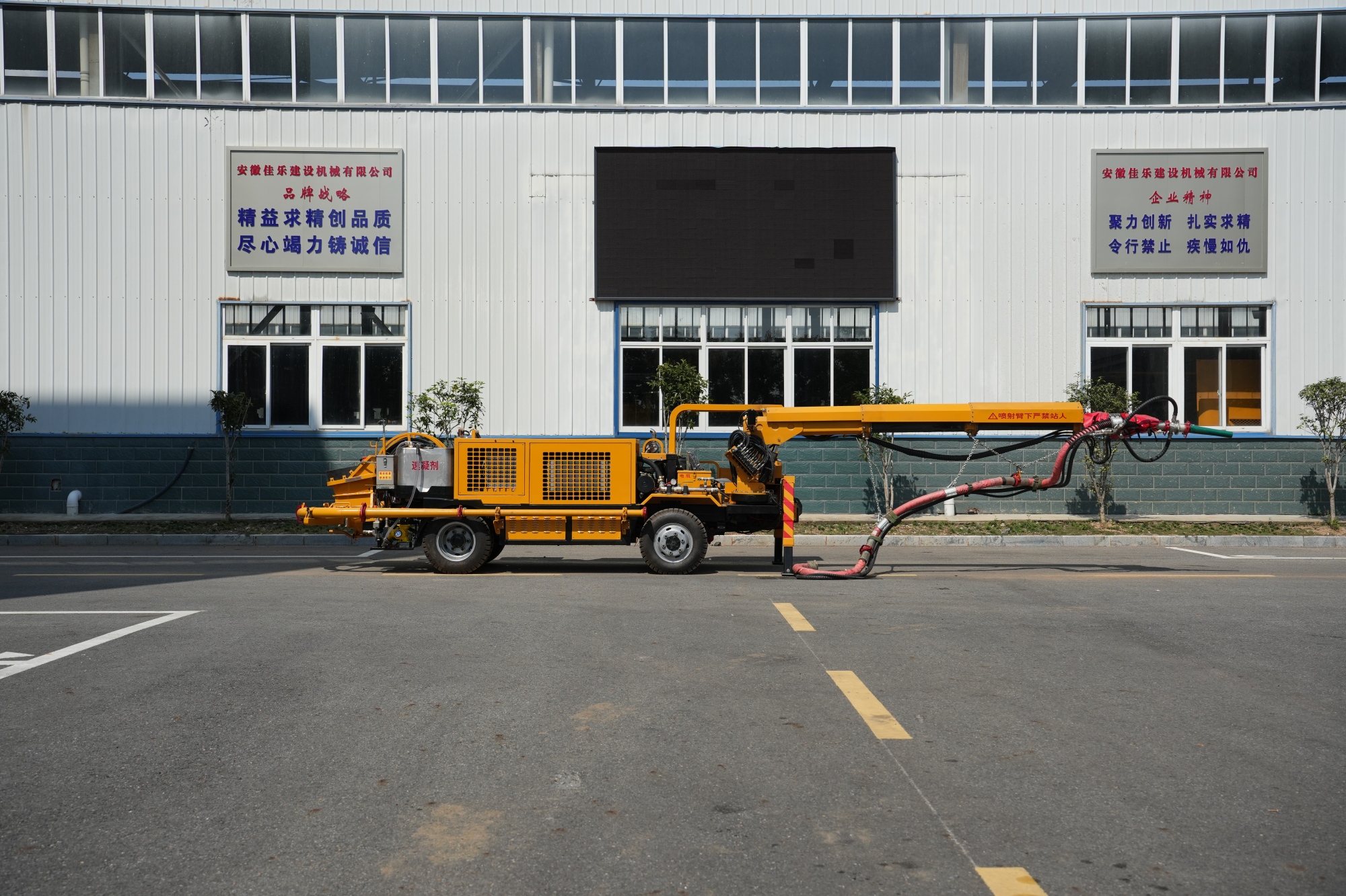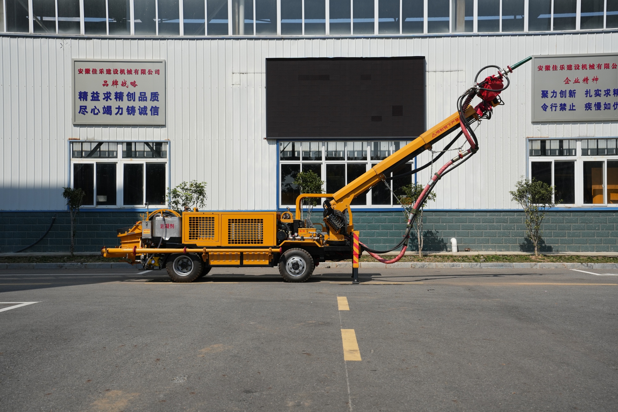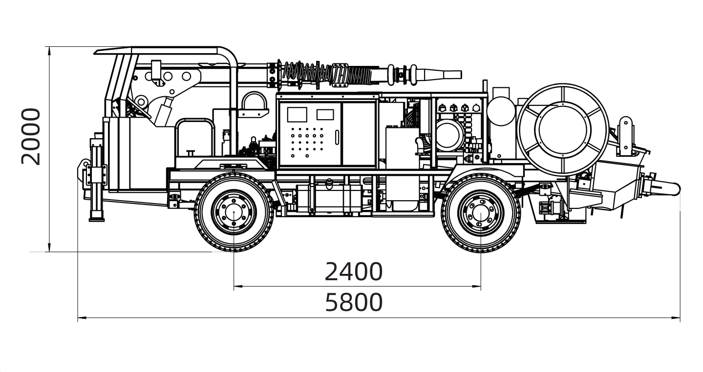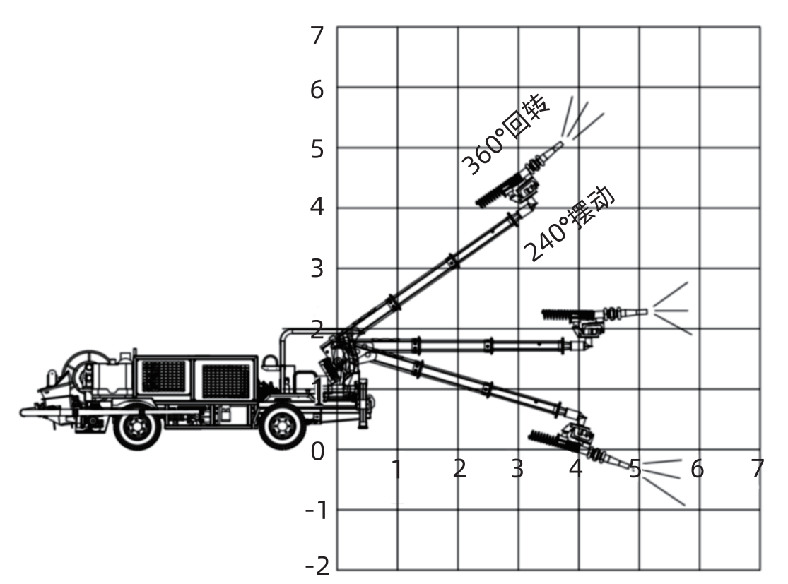 1.采用多级伸缩臂,全集成比例无线+有线双控遥控器进行喷浆作业,操作灵活,喷射范围广,喷射工作效率高。