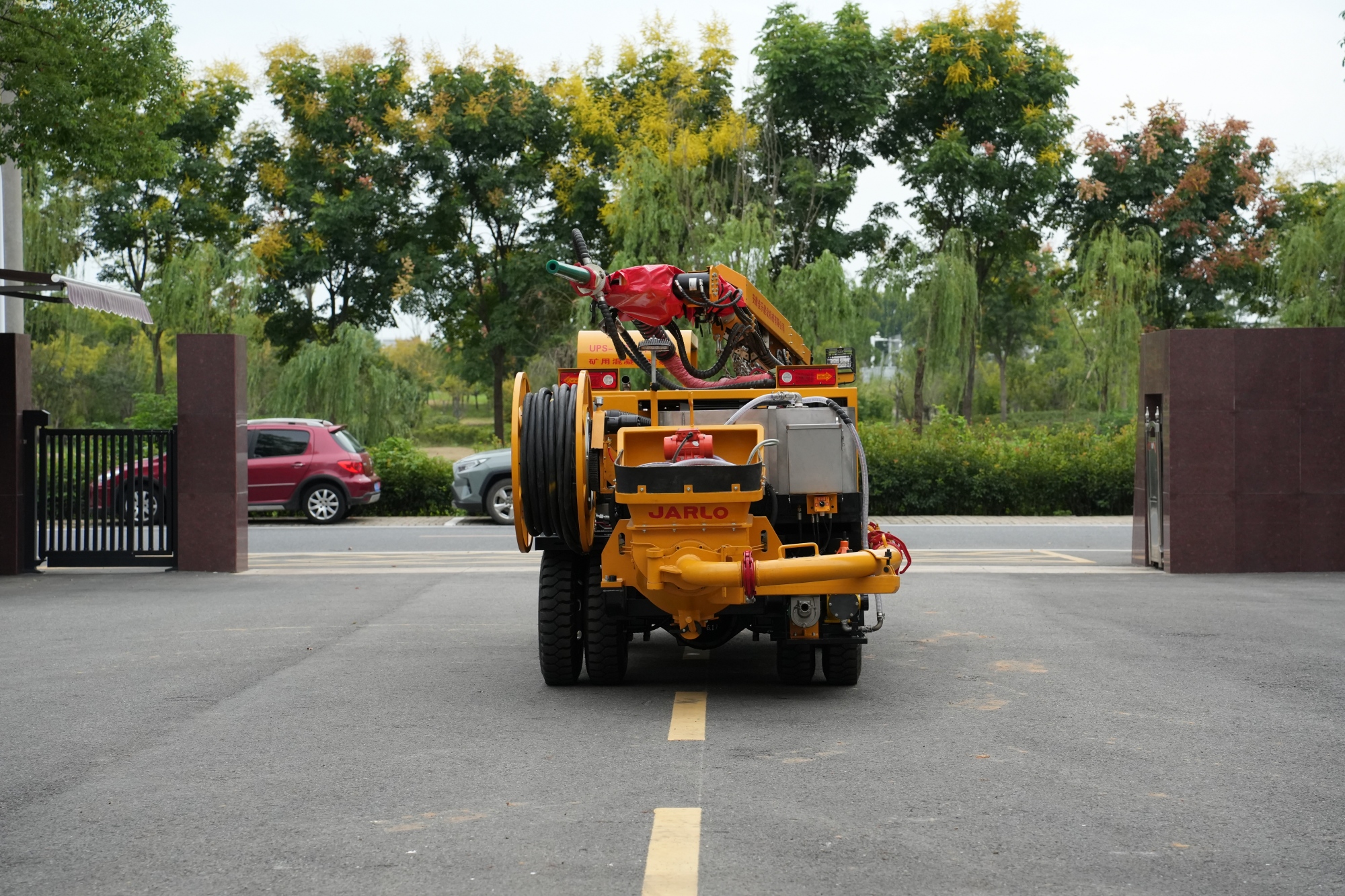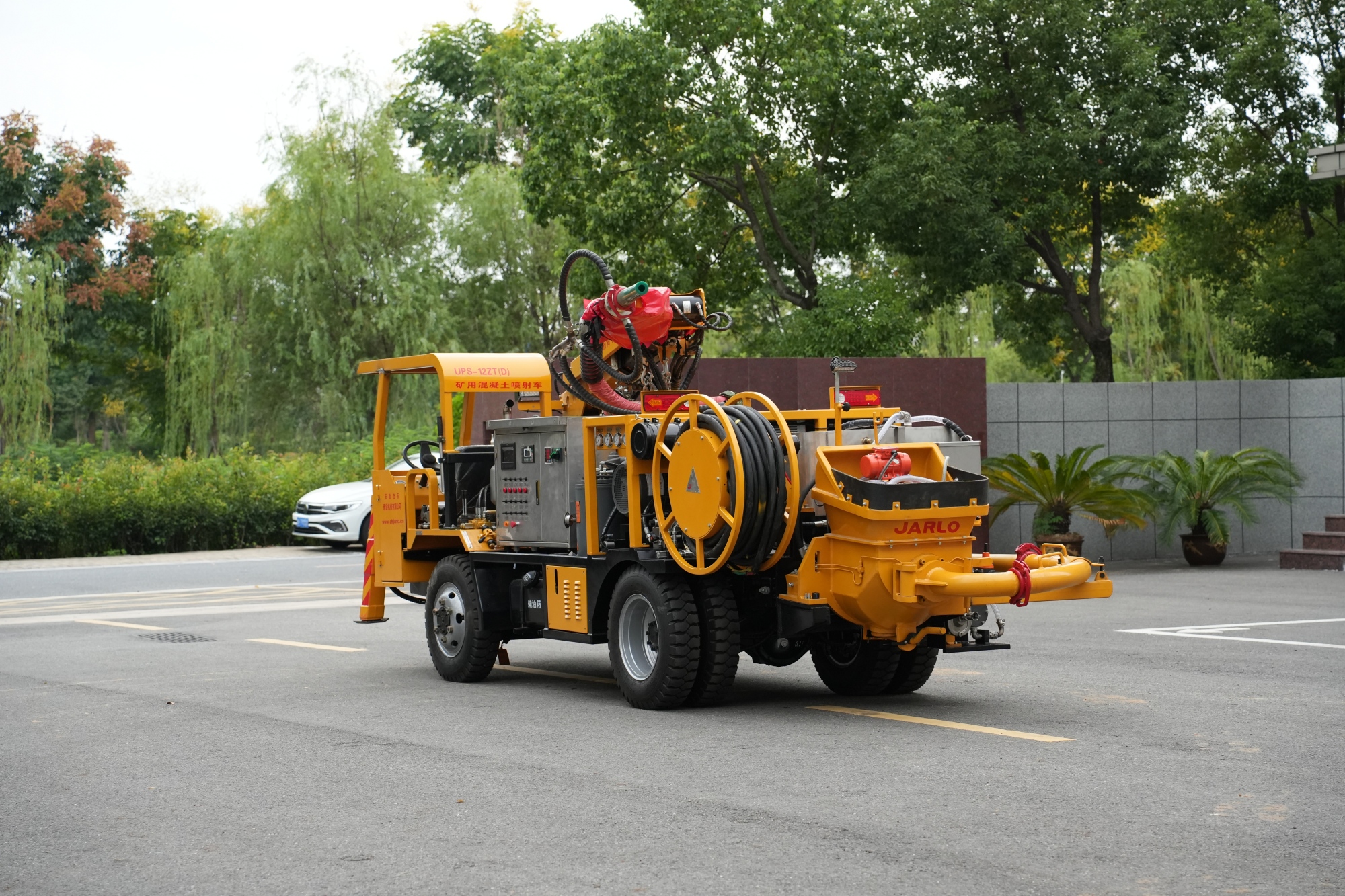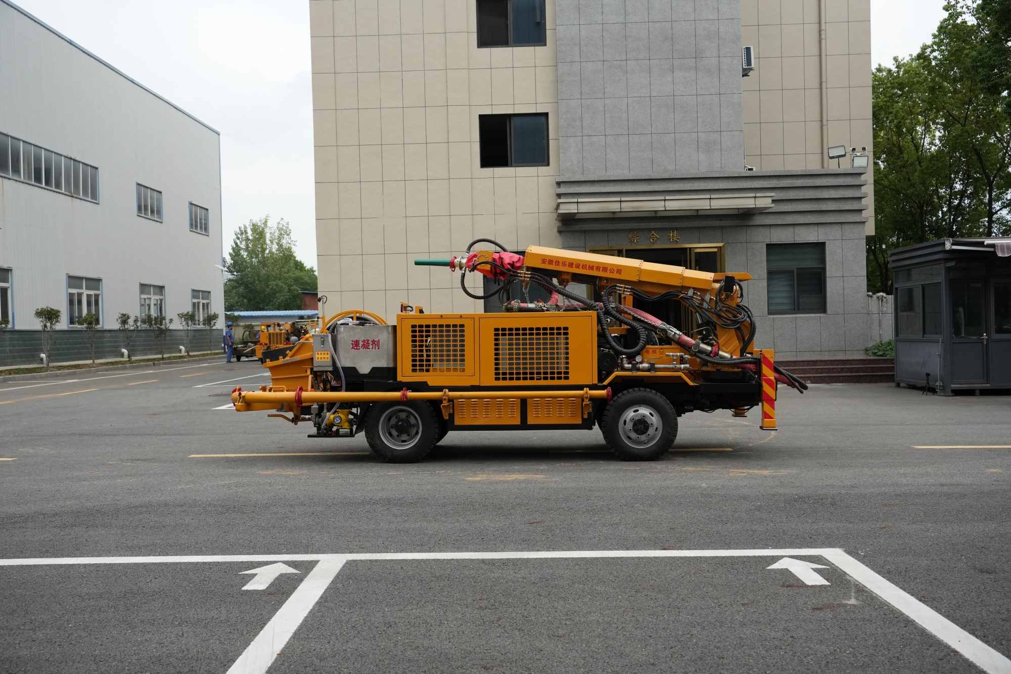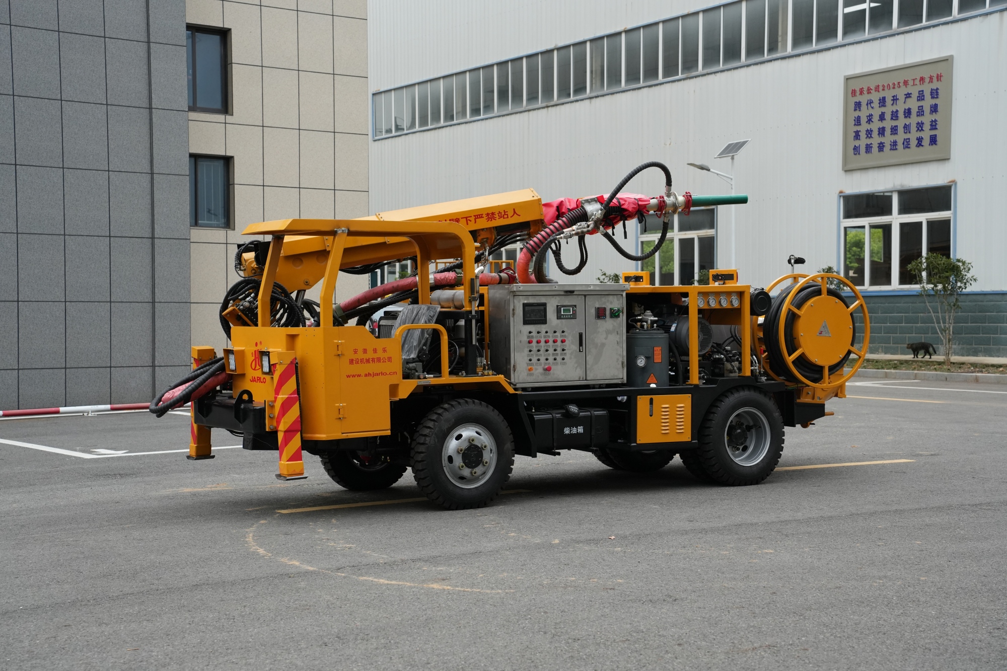 1.采用多级伸缩臂,全集成比例无线+有线双控遥控器进行喷浆作业,操作灵活,喷射范围广,喷射工作效率高。