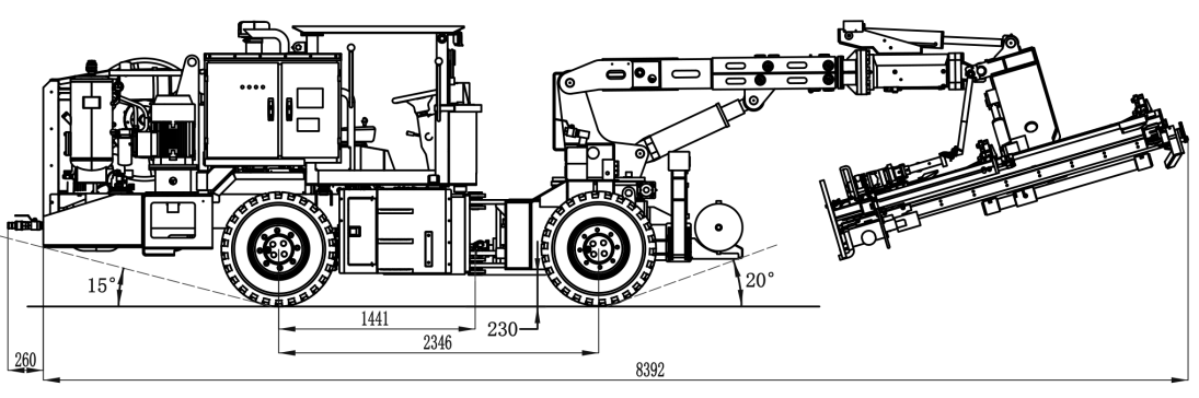 9.凿岩机推进形式:油缸带钢丝绳推进形式。