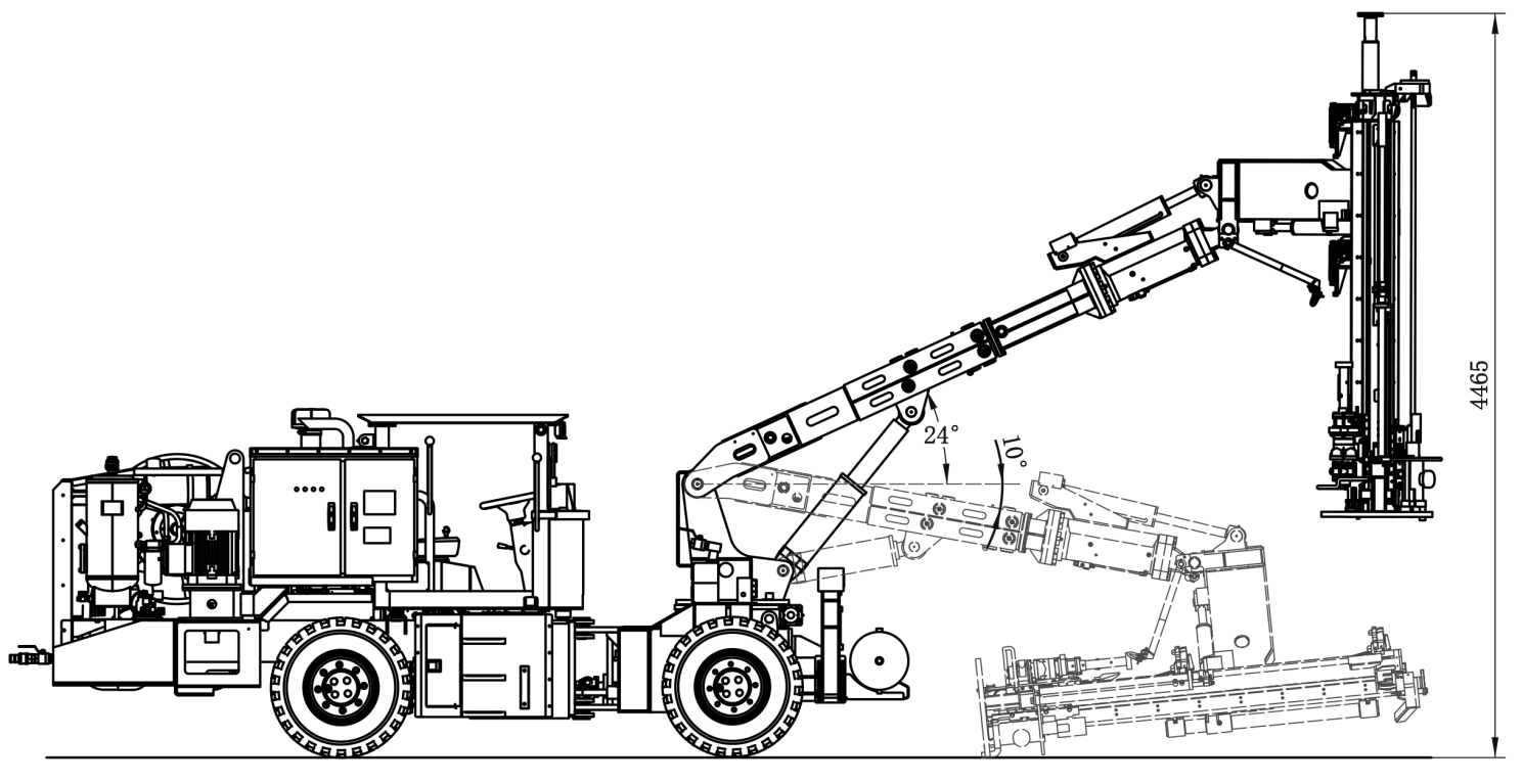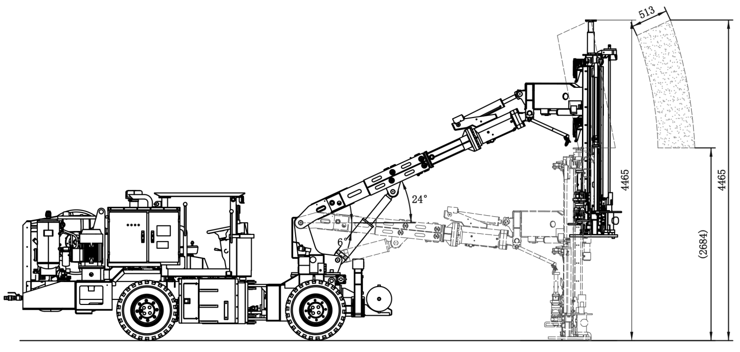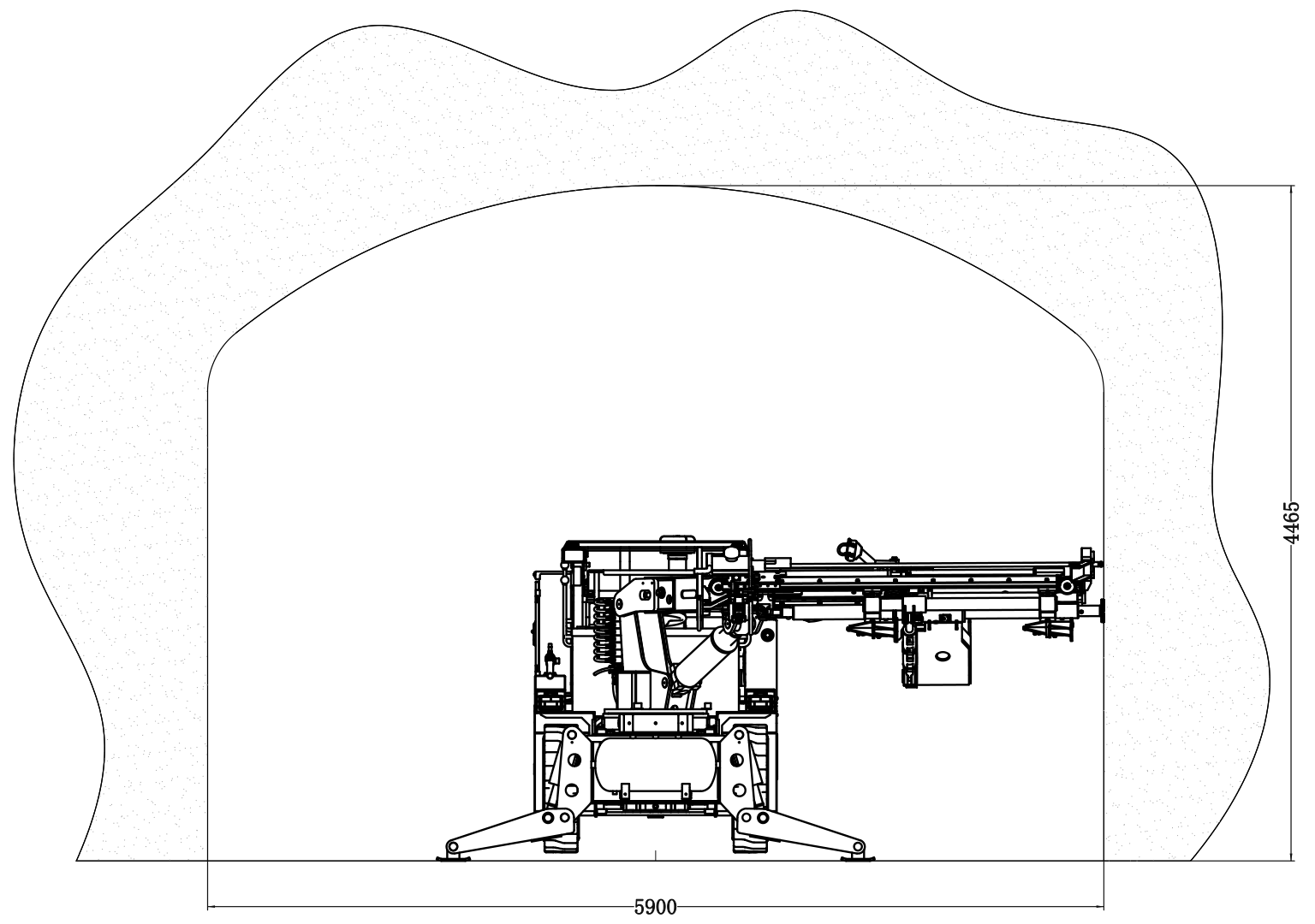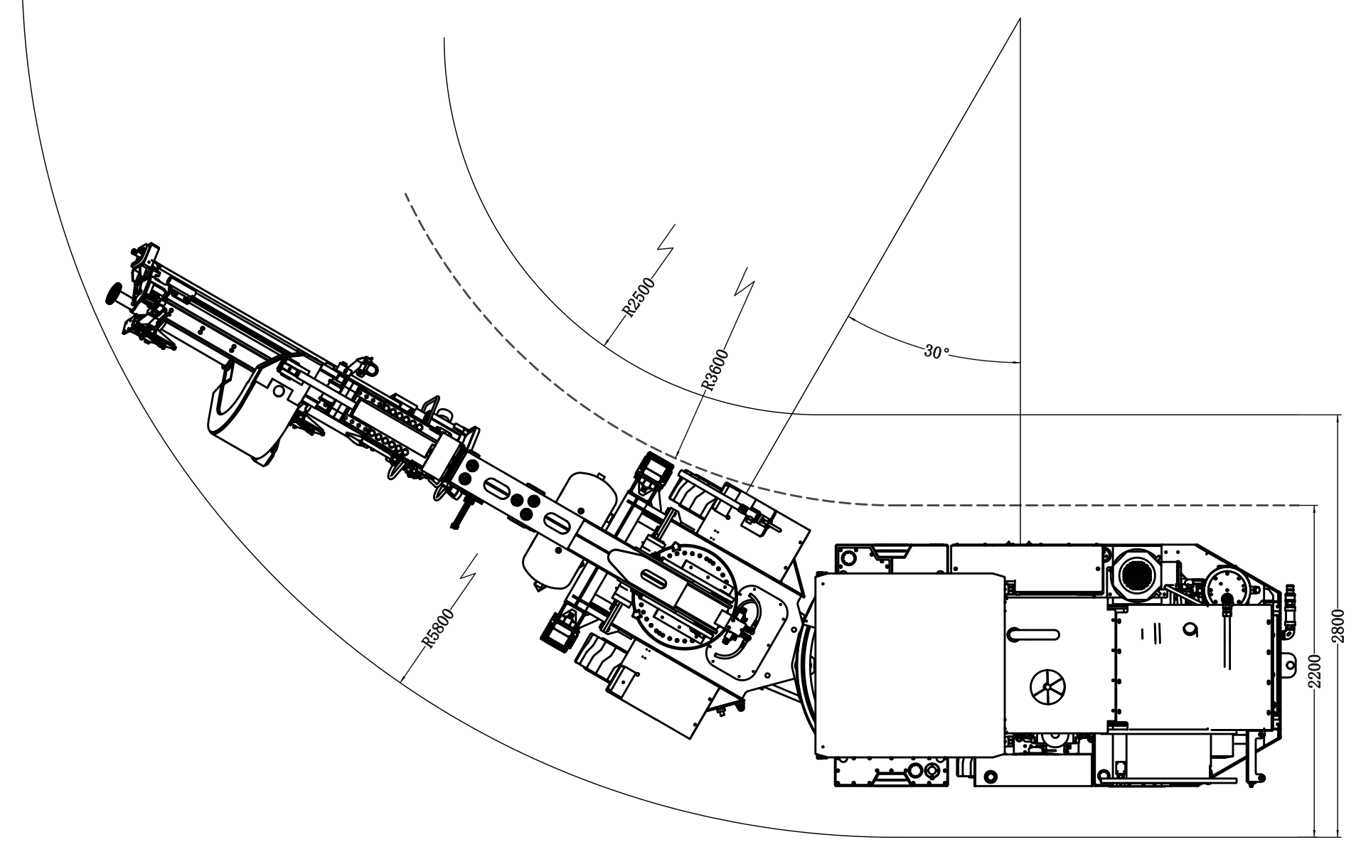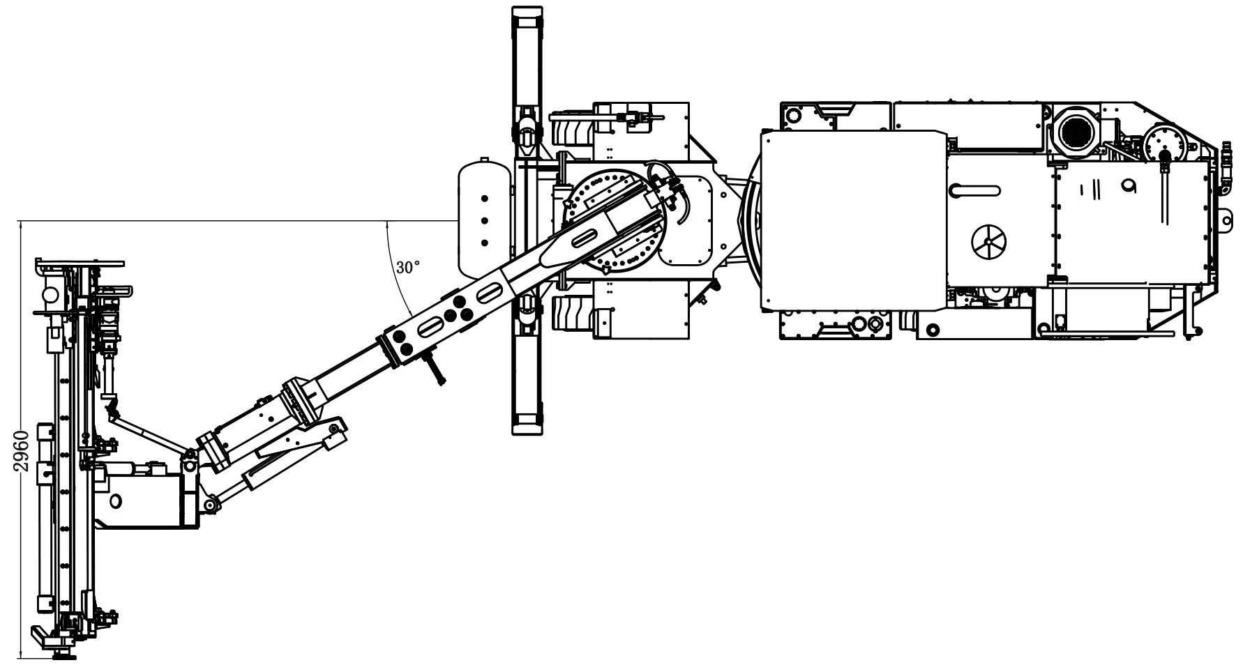 8.钻孔定位精准性:配置钻臂稳定撑顶机构,凿岩机回转切换,保证钻装中心的对中,确保钻孔与锚杆安装的精确性。