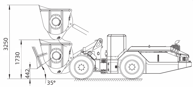 1. 采用铰接式转向,窄小的外形尺寸,横向驾驶室,具有更好的巷道通过性;