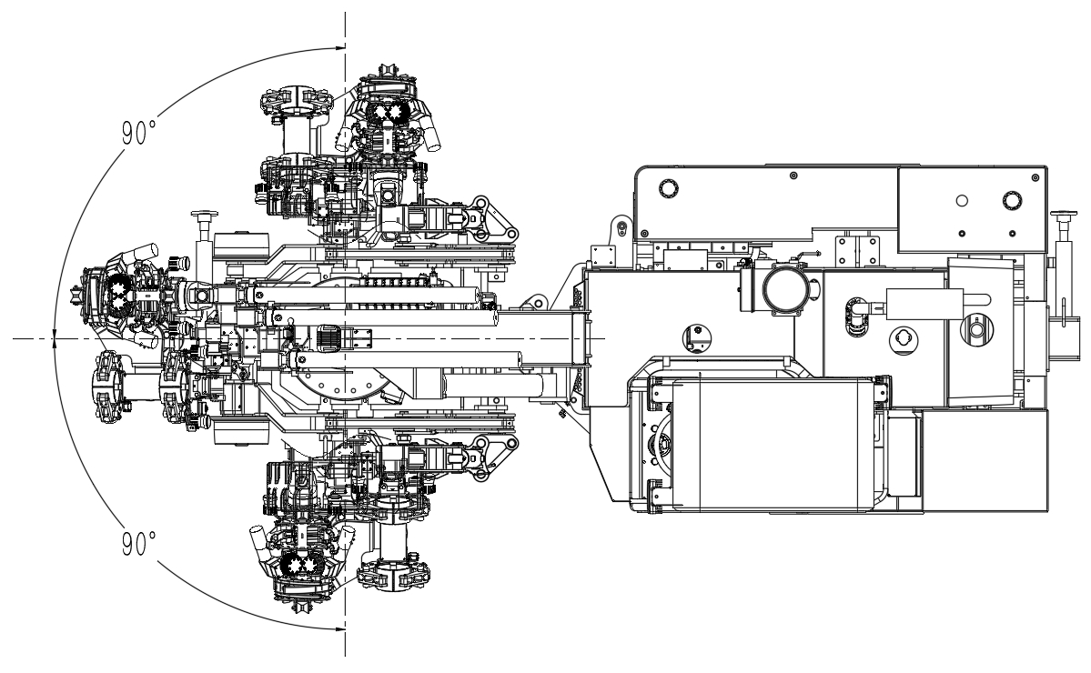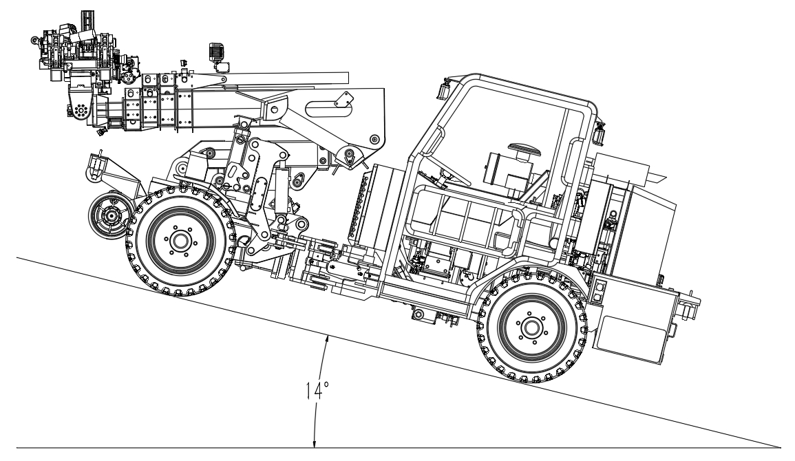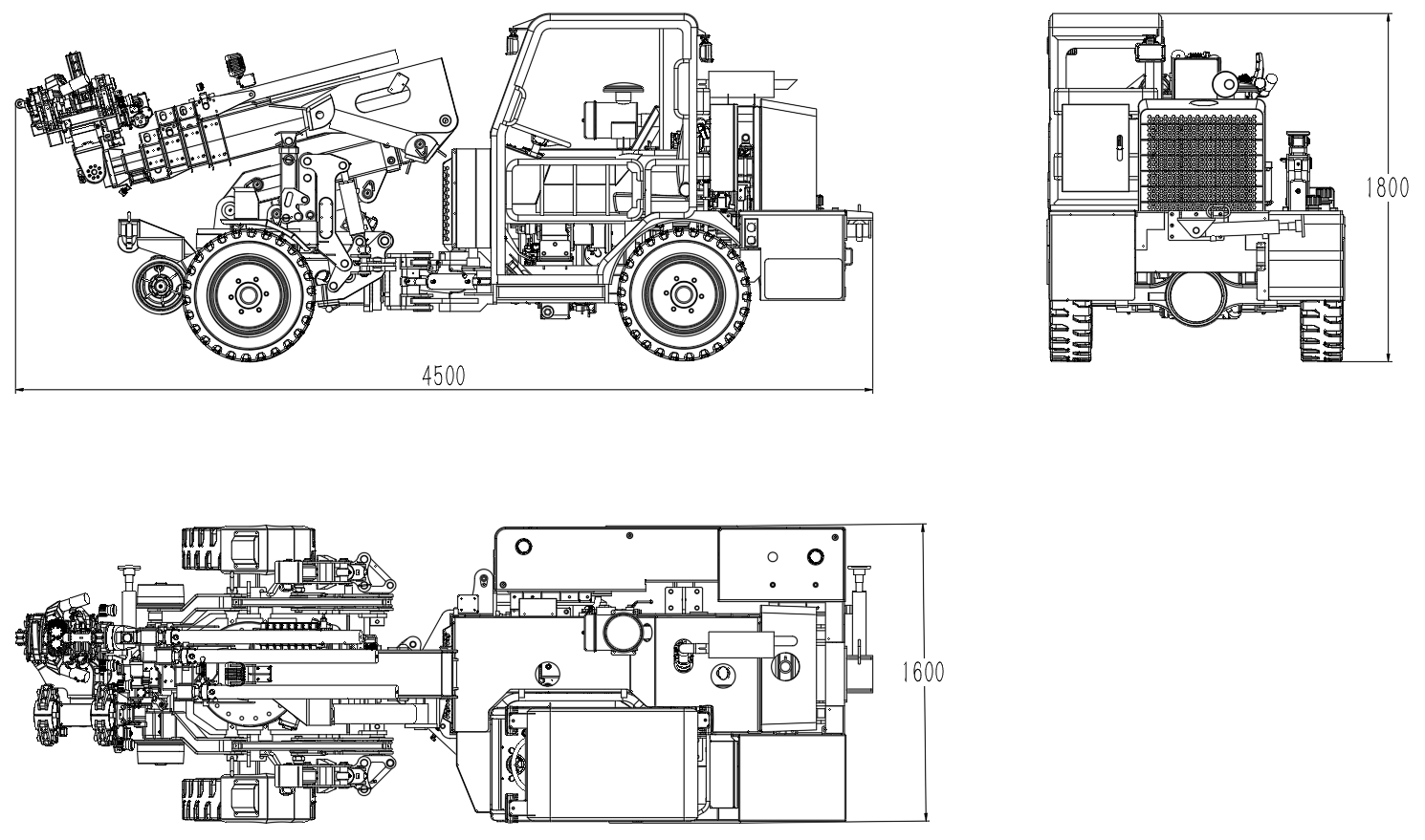 2.采用铰接转向,设备机动性好,整体尺寸小,能够适用于不同大小的矿山巷道。